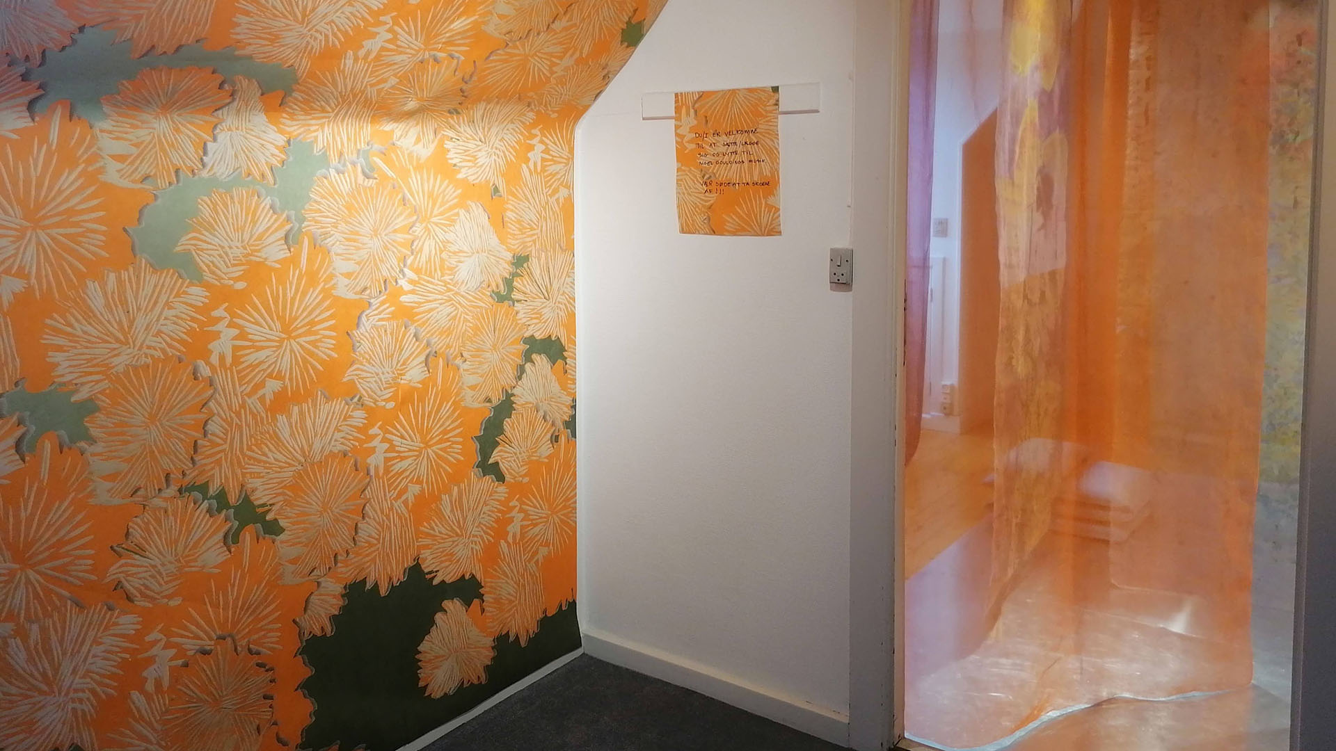 Printed wallpaper in the entrance .